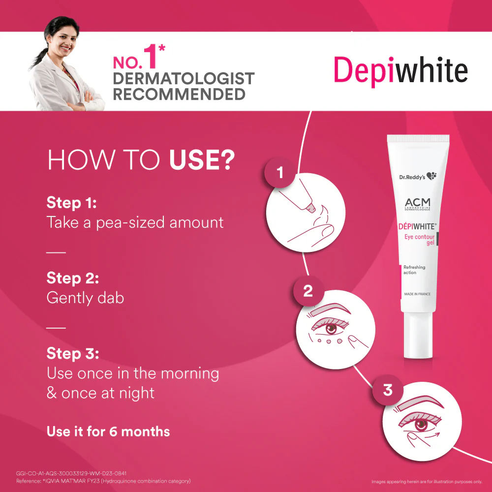 - For all skin types: Depiwhite eye contour gel is clinically proven to be an effective under-eye cream for dark circles for women & men. It works on all skin types (oily, dry, sensitive, combination, or normal). To help calm & moisturize the delicate skin around the eyes and give a more youthful and rejuvenated finish, use this eye cream for dark circles once in the morning & once at night for six months regularly