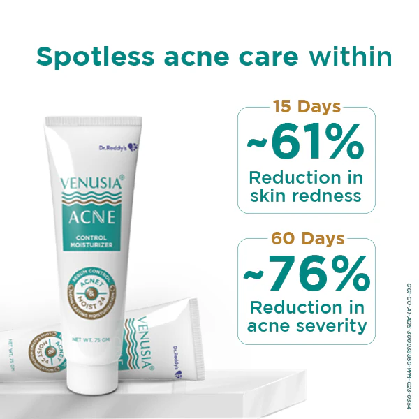- Venusia Acne Control Moisturizer helps to control sebum production and prevent acne formation. It is suitable for all skin types and keeps the skin moisturized throughout the day.