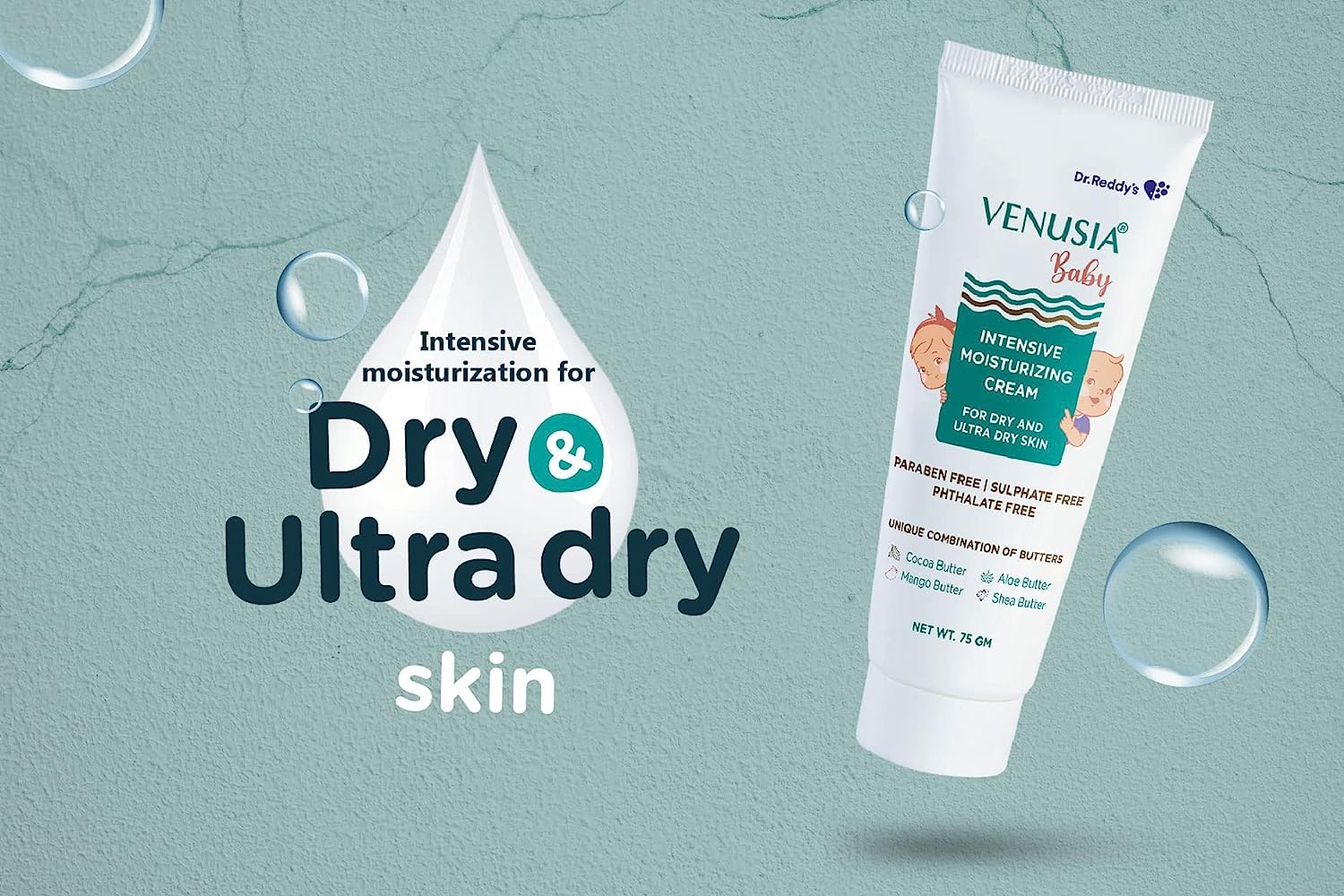 Dr Reddy's Venusia Baby Intensive Moisturizing Cream | For Dry and Ultra Dry Skin | Paraben Free,Sulphate Free,Phalate Free | Contains Cocoa, Aloe, Mango & Shea Butters | 75 gm—